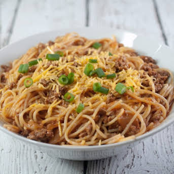 Chili Spaghetti Two Of Your Favorite Recipes In One Lil Luna Recipe Chili Spaghetti Spaghetti Recipes Flavorful Chili Recipe