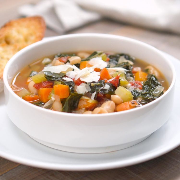 Tuscan Bean Soup With Kale. A flavorful hearty stew from Tuscany called Ribollita with Cannellini beans lacinato kale and vegetables served with crusty bread drizzled with a Lemon Rosemary Garlic Oil. Add minced garlic and chopped. Cook stirring occasionally until the carrots are tender then add the beans and heat through.